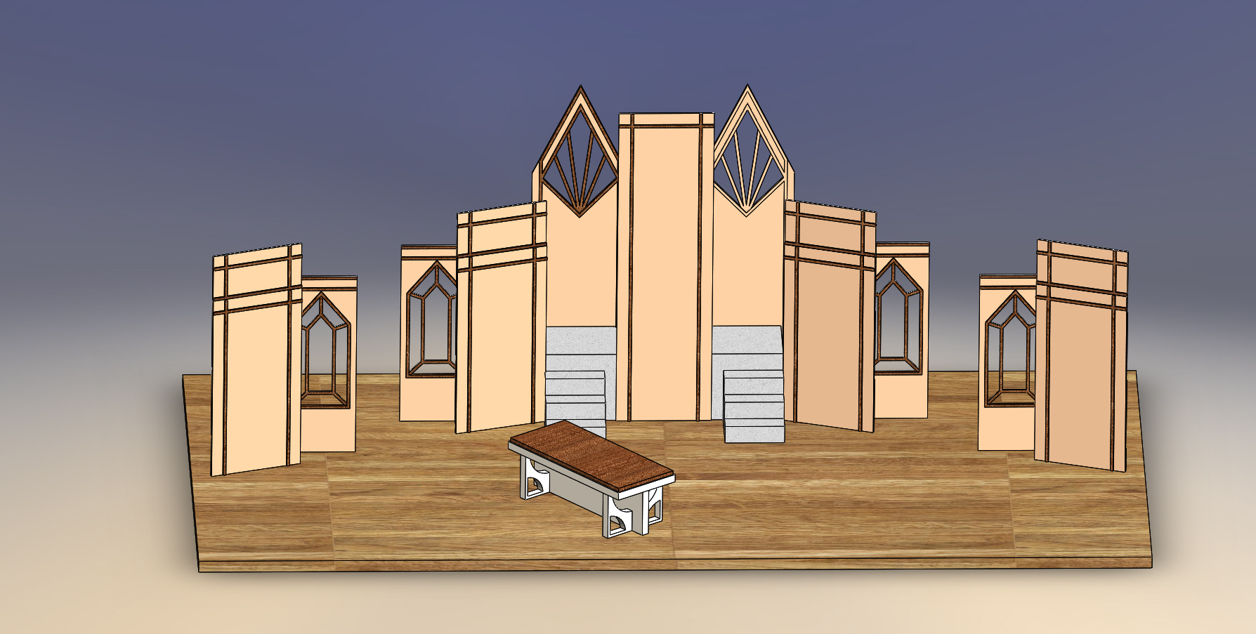 Although The Lion in Winter is set in the middle ages, we decided to focus on the timelessness of political intrigue and family by setting the show in a 1940’s castle/apartment. The high windows and non-contiguous walls bring an art deco finish to forms reminiscent of turrets and parapets.